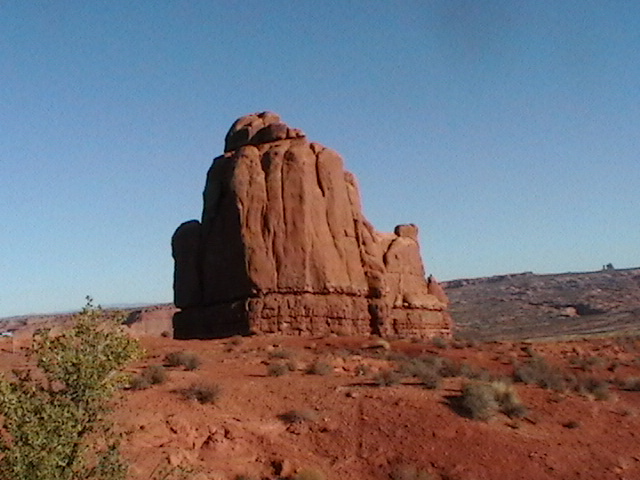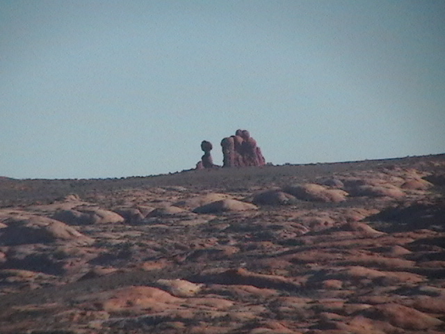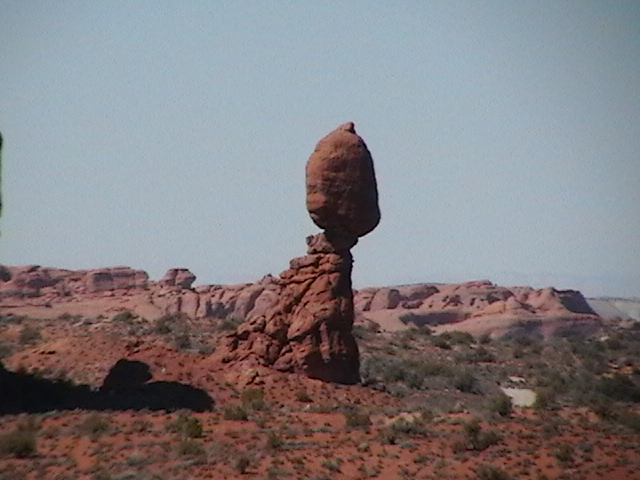 The balanced rock of Arch National Park, a far away look from a parking area near Court House.