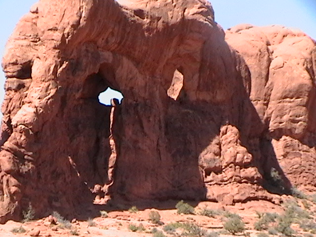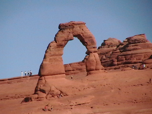 sun from that view point. The people at the base of the arch scrambled down the rocky slope from