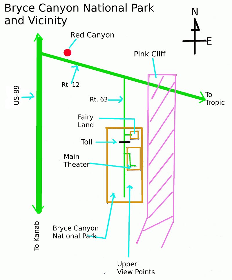 The MapA map to show the location of "Fairy Land" and the main amphitheater of Bryce Canyon. |