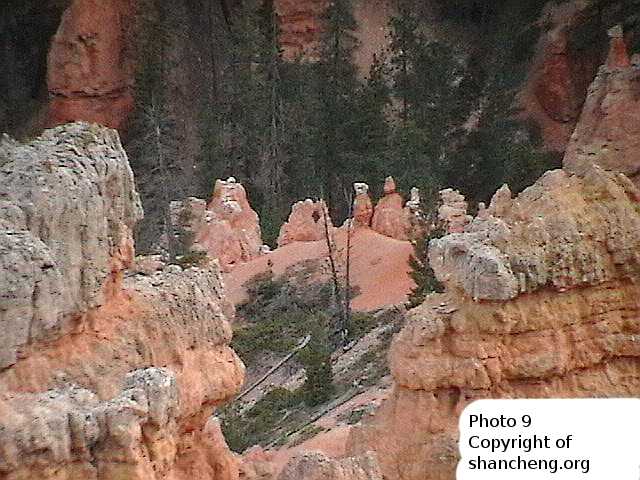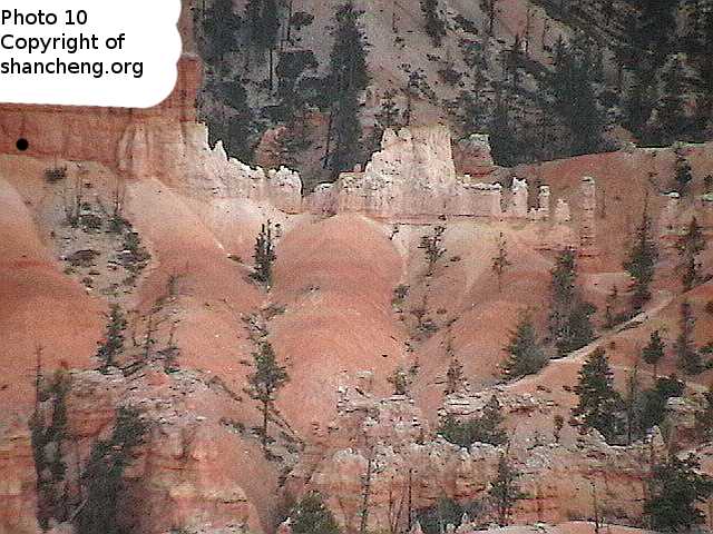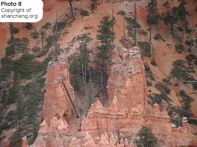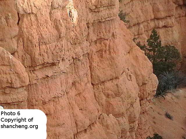 Bryce Canyon National Park is famed for its numerous stone columns, called hoodoos. Less well known is that Bryce Canyon produces many phantom images, apparently the result of light and shadows. Those phantom images are not permanent. If you find one, you probably will never see it again in your later visits. Some phantom images just disappears by changing the viewing angle, but some are more durable. The place within Bryce Canyon that produces more fantastic phantom images is called “Fairy Land”. It is a much smaller area than the main amphitheater, and hoodoos there are much less orderly than the ones in the main amphitheater. The main amphitheater, though still produce some phantom images, their number is far fewer and the qualities inferior than the ones from Fairy Land.